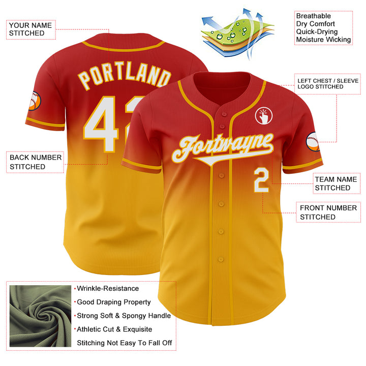 Custom Red White-Gold Authentic Fade Fashion Baseball Jersey