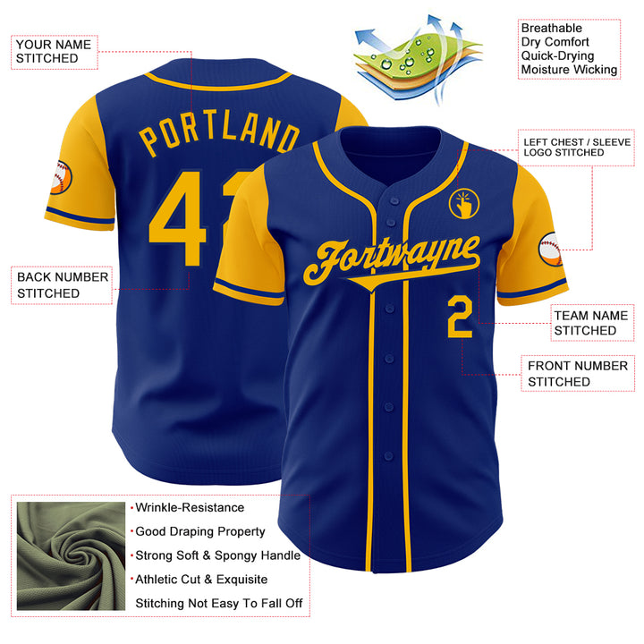 Custom Royal Gold Authentic Two Tone Baseball Jersey