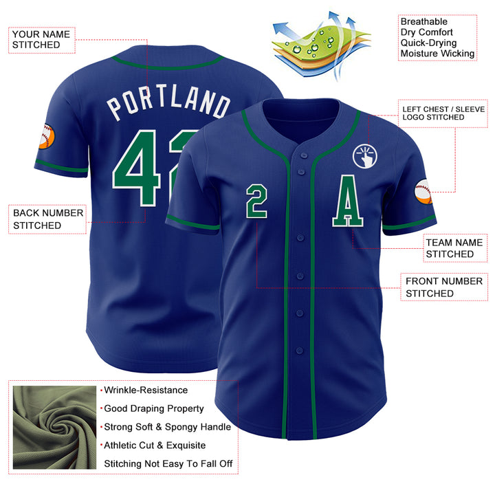 Custom Royal Kelly Green-White Authentic Baseball Jersey