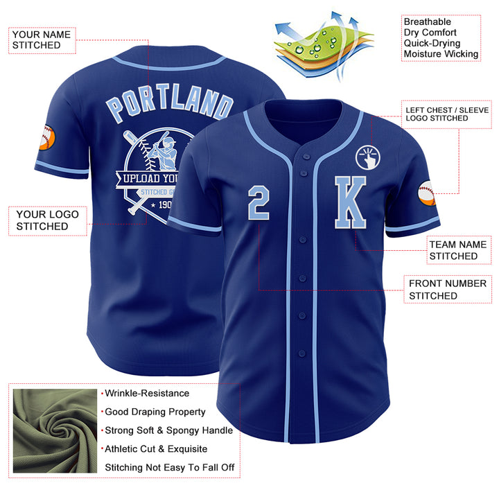 Custom Royal Light Blue-White Authentic Baseball Jersey