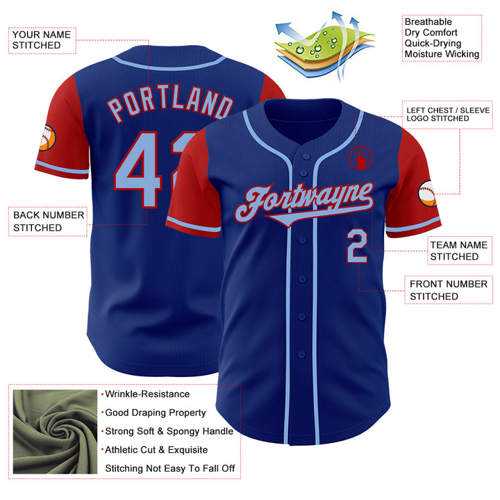 Custom Royal Light Blue-Gold Authentic Two Tone Baseball Jersey