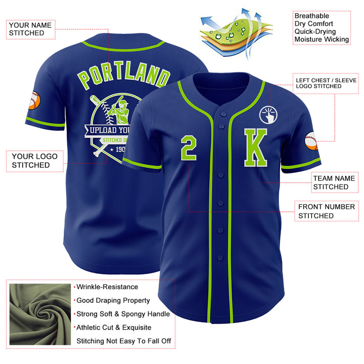 Custom Royal Neon Green-White Authentic Baseball Jersey