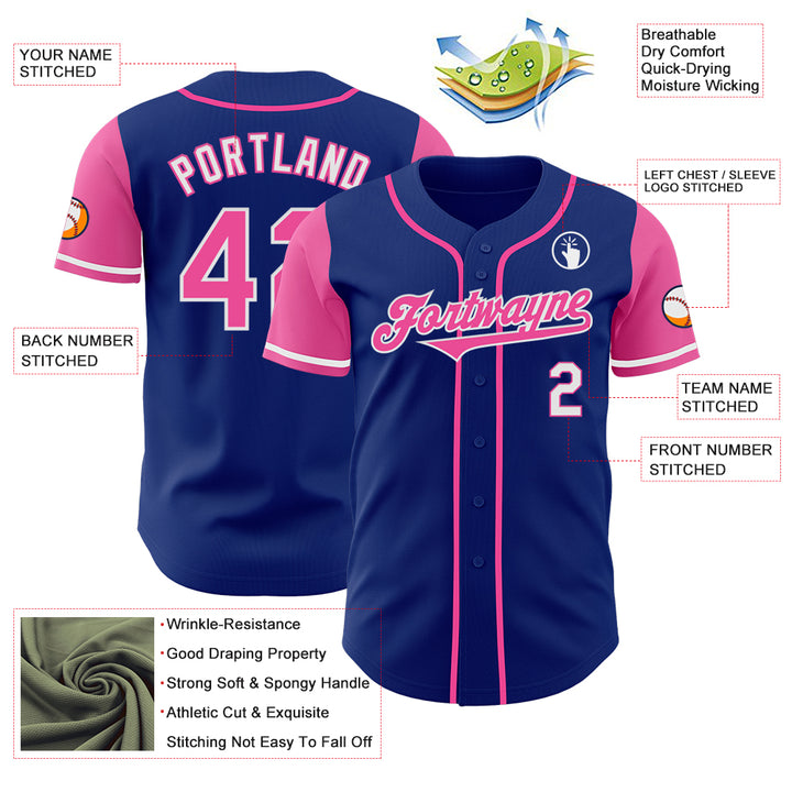 Custom Royal Pink-White Authentic Two Tone Baseball Jersey
