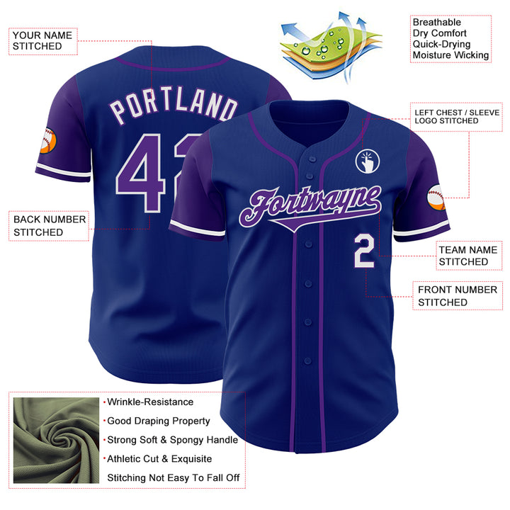 Custom Royal Purple-White Authentic Two Tone Baseball Jersey