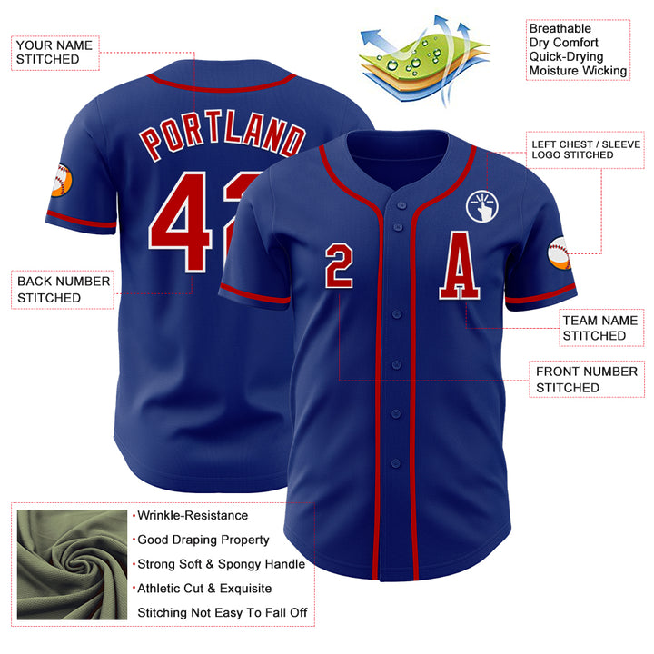 Custom Royal Red-White Authentic Baseball Jersey