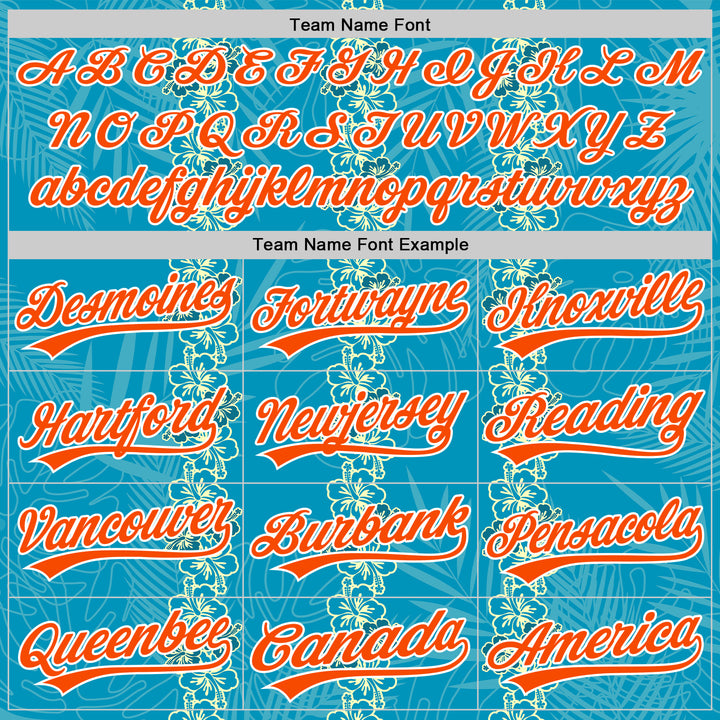 Custom Sky Blue Orange-White 3D Tropical Hawaii Jungle Leaves And Flower Authentic Baseball Jersey