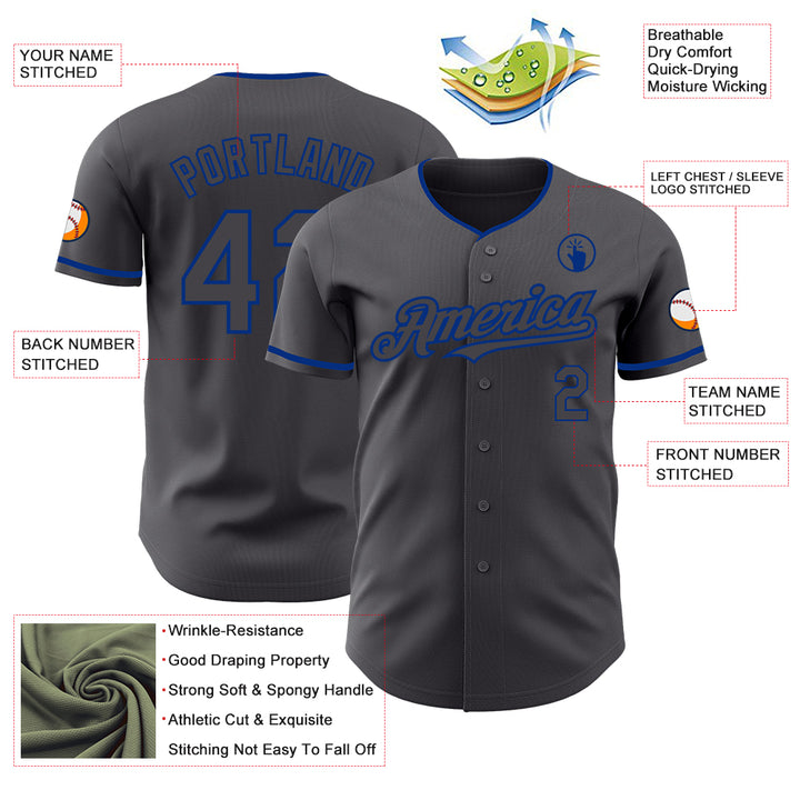 Custom Steel Gray Royal Authentic Baseball Jersey