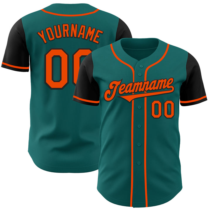 Custom Teal Orange-Black Authentic Two Tone Baseball Jersey