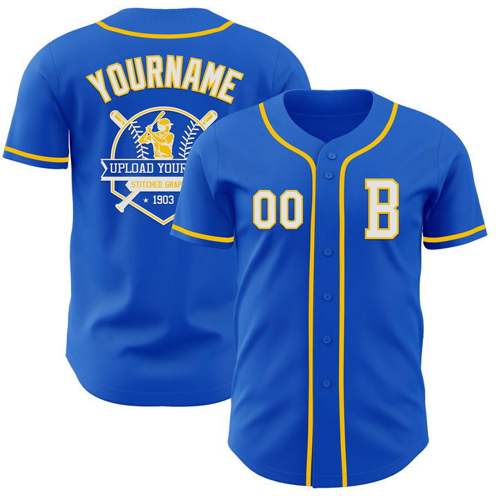 Custom Thunder Blue White-Yellow Authentic Baseball Jersey