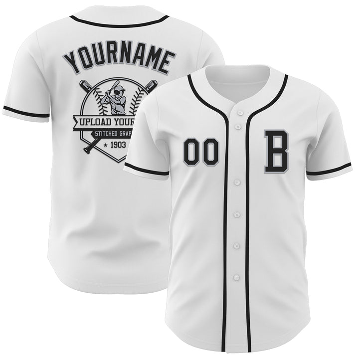 Custom White Black-Gray Authentic Baseball Jersey