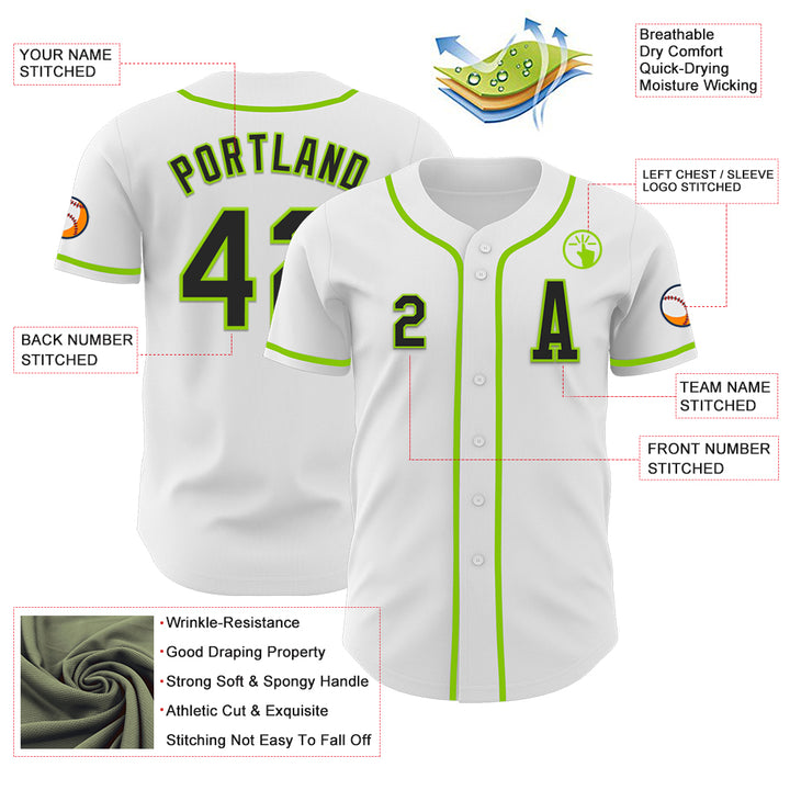 Custom White Black-Neon Green Authentic Baseball Jersey