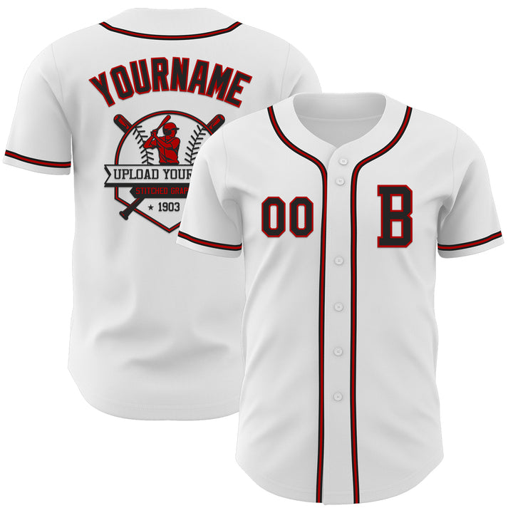 Custom White Black-Red Authentic Baseball Jersey