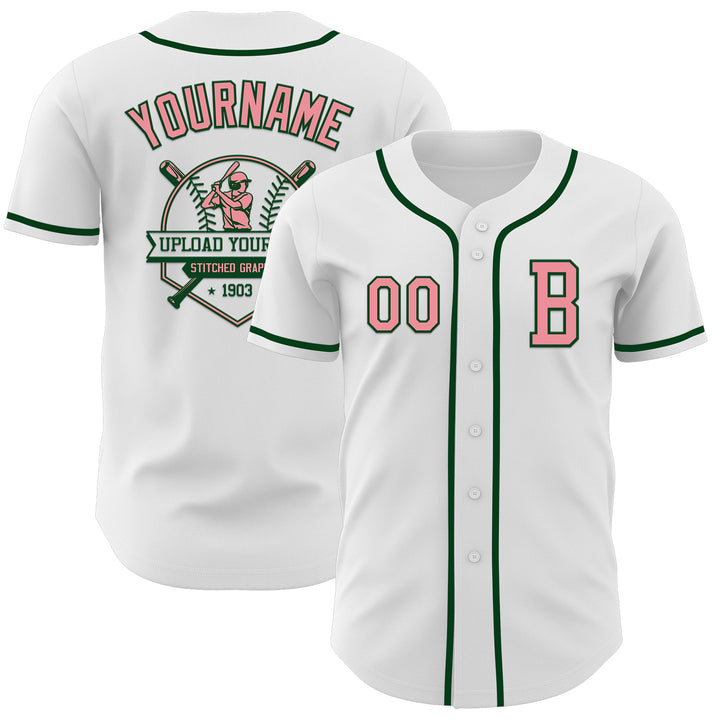 Custom White Medium Pink-Green Authentic Baseball Jersey