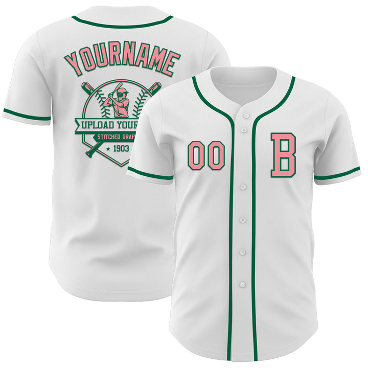 Custom White Medium Pink-Kelly Green Authentic Baseball Jersey