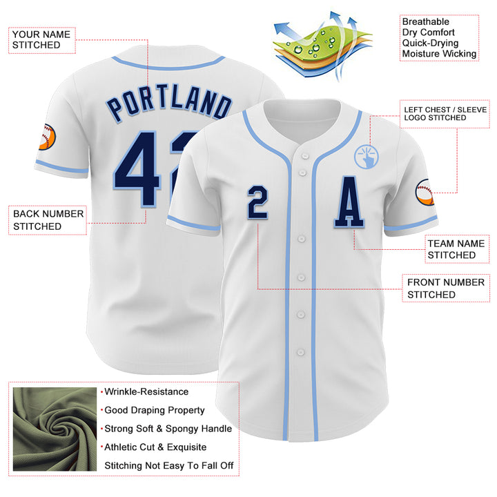 Custom White Navy-Light Blue Authentic Baseball Jersey