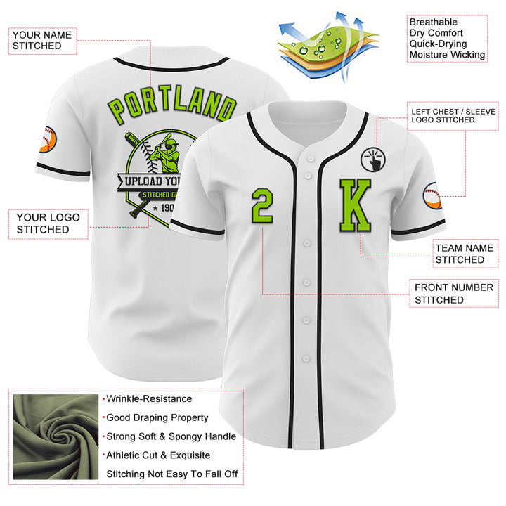 Custom White Neon Green-Black Authentic Baseball Jersey