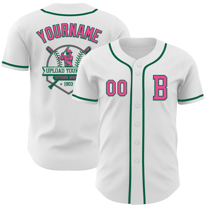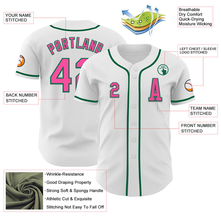 Custom White Pink-Kelly Green Authentic Baseball Jersey