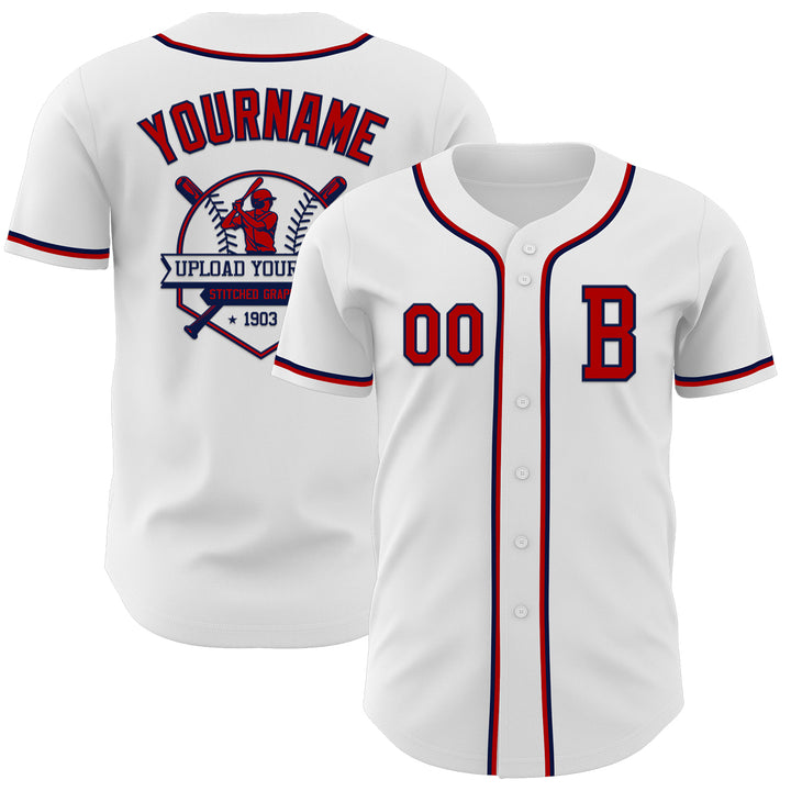 Custom White Red-Navy Authentic Baseball Jersey