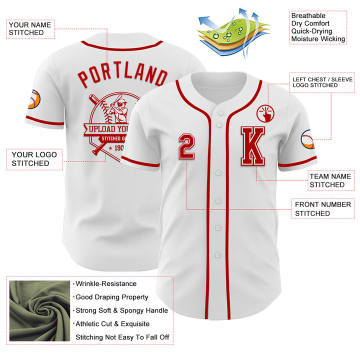 Custom White Red Authentic Baseball Jersey