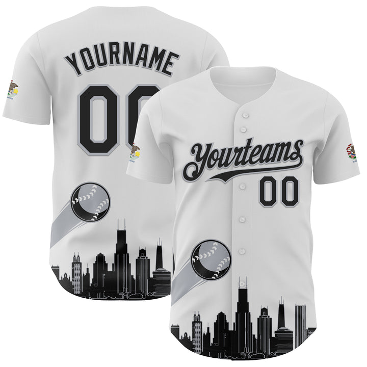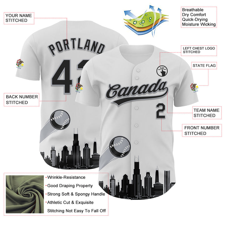 Custom White Black-Gray 3D Urban City Edition Sports Authentic Baseball Jersey