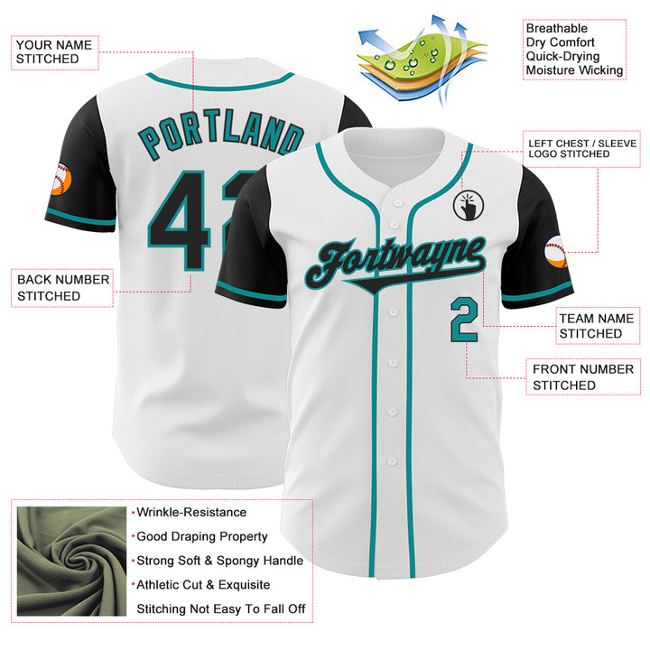 Custom White Black-Teal Authentic Two Tone Baseball Jersey