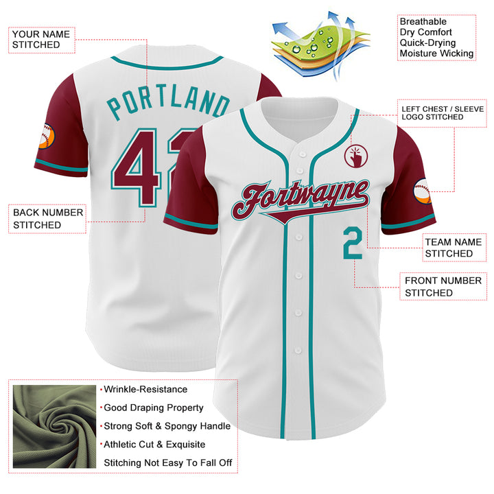Custom White Crimson-Teal Authentic Two Tone Baseball Jersey