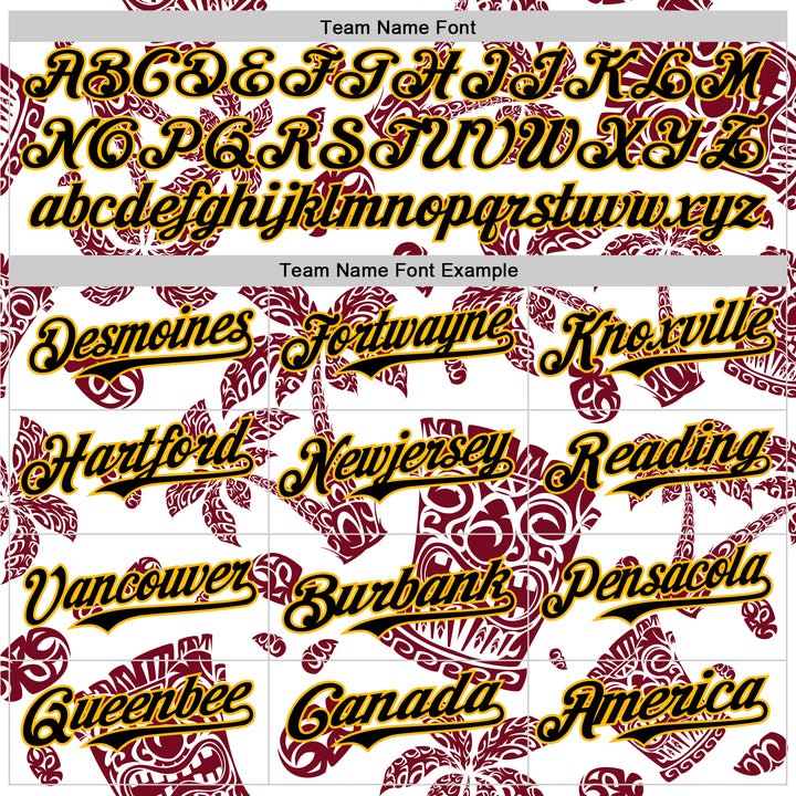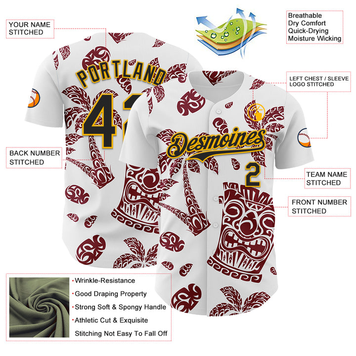 Custom White Black Crimson-Gold 3D Polynesian Style Tiki Culture Islander Authentic Baseball Jersey