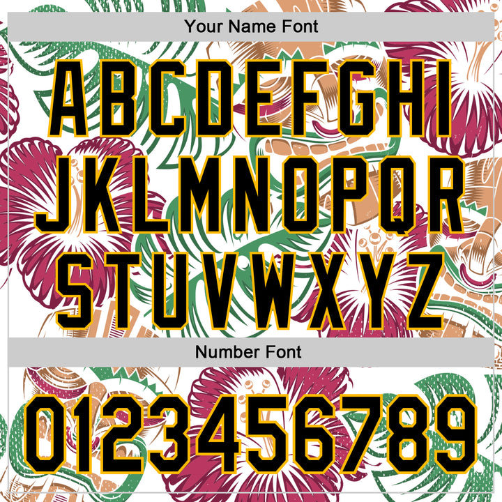 Custom White Black-Gold 3D Polynesian Style Tiki Culture Palm Leaves Islander Authentic Baseball Jersey