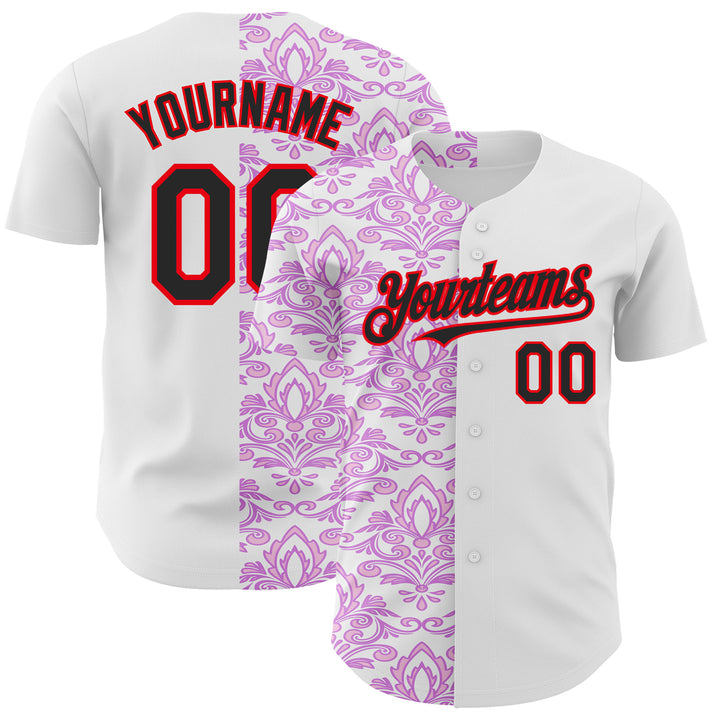 Custom White Black Purple-Fire Red 3D Polynesian Style Islander Authentic Baseball Jersey