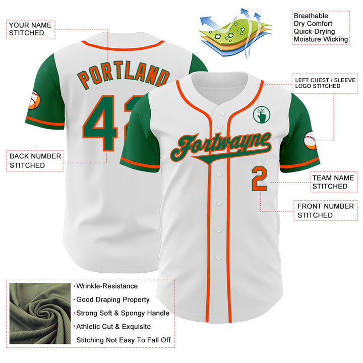 Custom White Kelly Green-Orange Authentic Two Tone Baseball Jersey