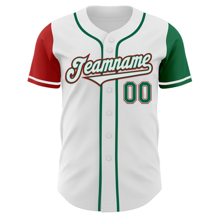 Custom White Kelly Green-Red Authentic Two Tone Baseball Jersey