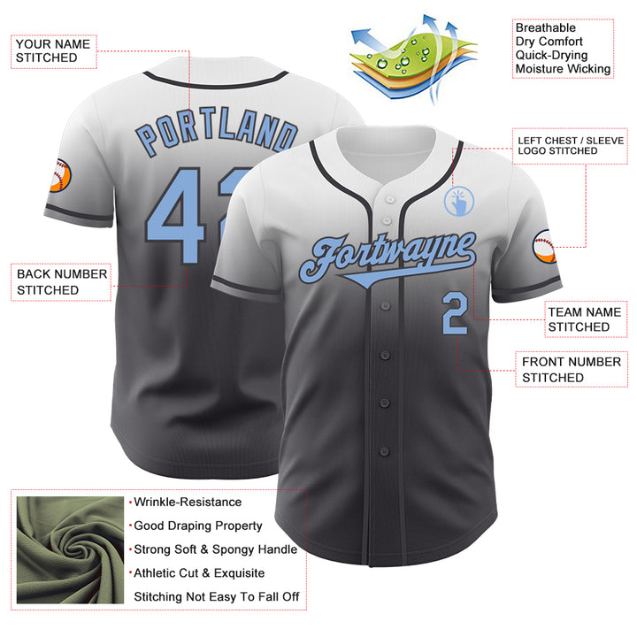 Custom White Light Blue-Steel Gray Authentic Fade Fashion Baseball Jersey