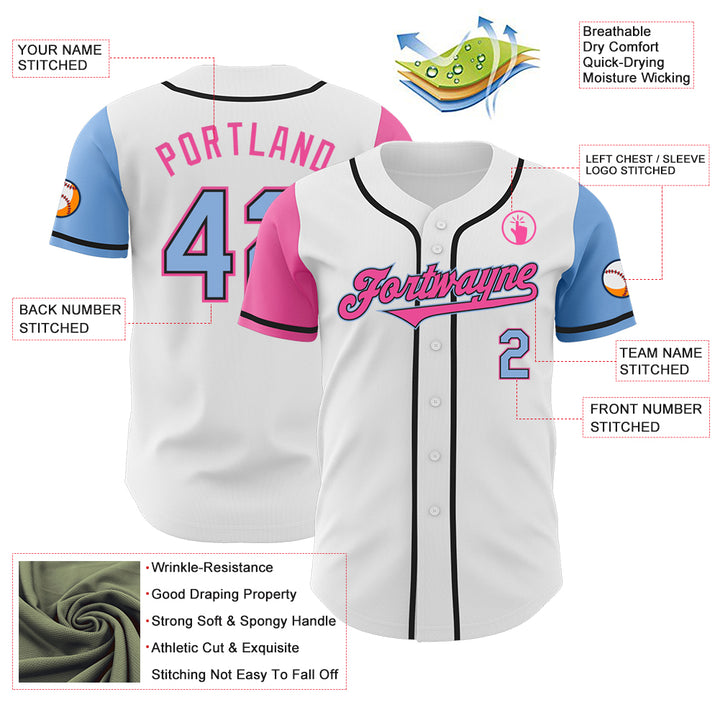 Custom White Light Blue Black-Pink Authentic Two Tone Baseball Jersey