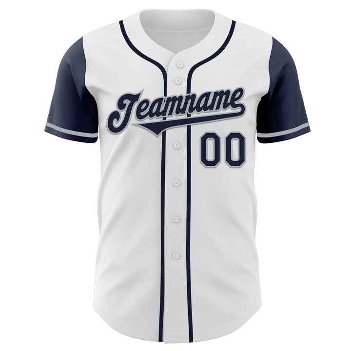 Custom White Navy-Gray Authentic Two Tone Baseball Jersey