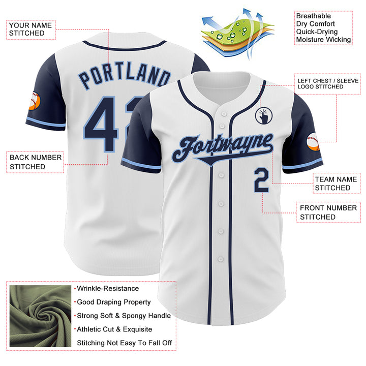 Custom White Navy-Light Blue Authentic Two Tone Baseball Jersey