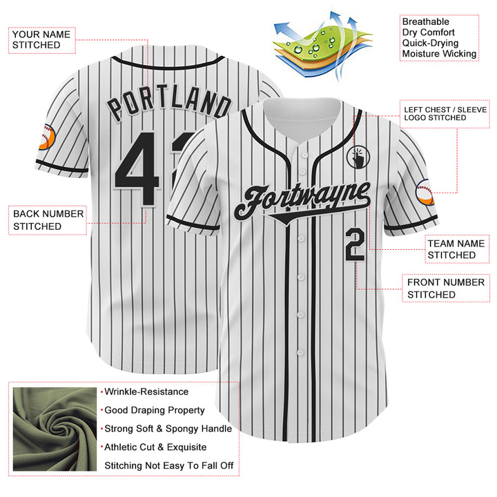 Custom White Black Pinstripe Black Authentic Baseball Jersey