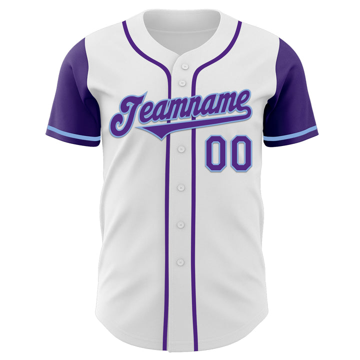 Custom White Purple-Light Blue Authentic Two Tone Baseball Jersey
