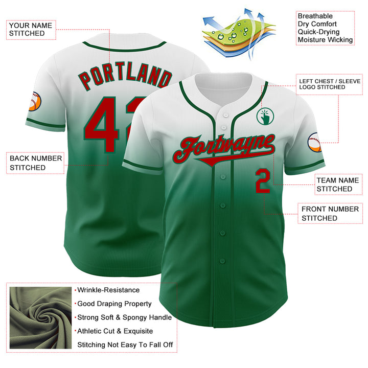 Custom White Red-Kelly Green Authentic Fade Fashion Baseball Jersey