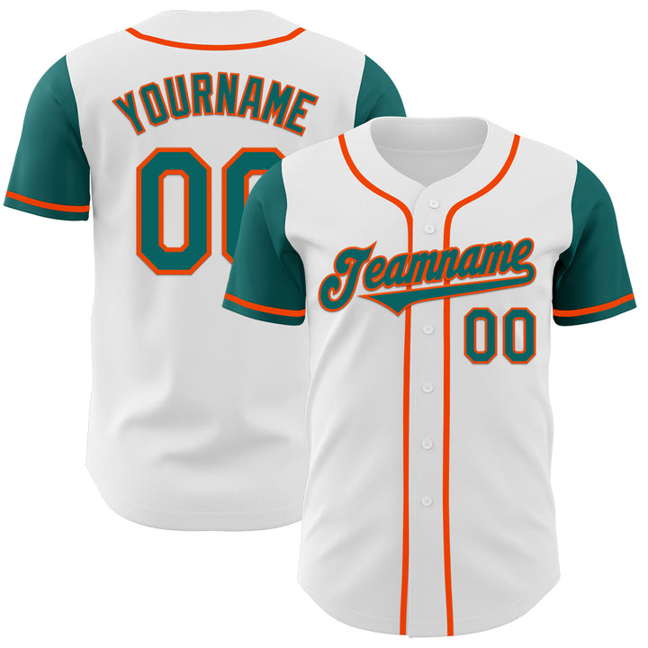 Custom White Teal-Orange Authentic Two Tone Baseball Jersey