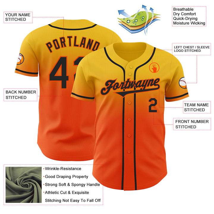 Custom Yellow Black-Orange Authentic Fade Fashion Baseball Jersey