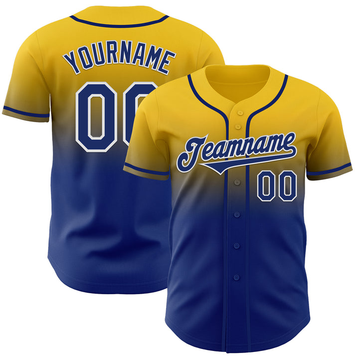Custom Yellow Royal-White Authentic Fade Fashion Baseball Jersey