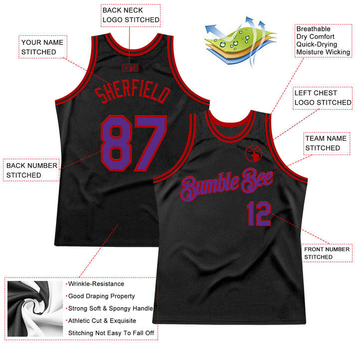 Custom Black Purple-Red Authentic Throwback Basketball Jersey