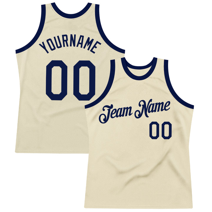 Custom Cream Navy Authentic Throwback Basketball Jersey