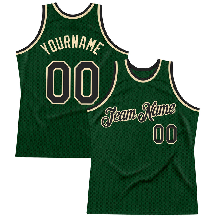 Custom Green Black-Cream Authentic Throwback Basketball Jersey