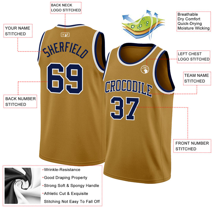 Custom Old Gold Navy-White Authentic Basketball Jersey