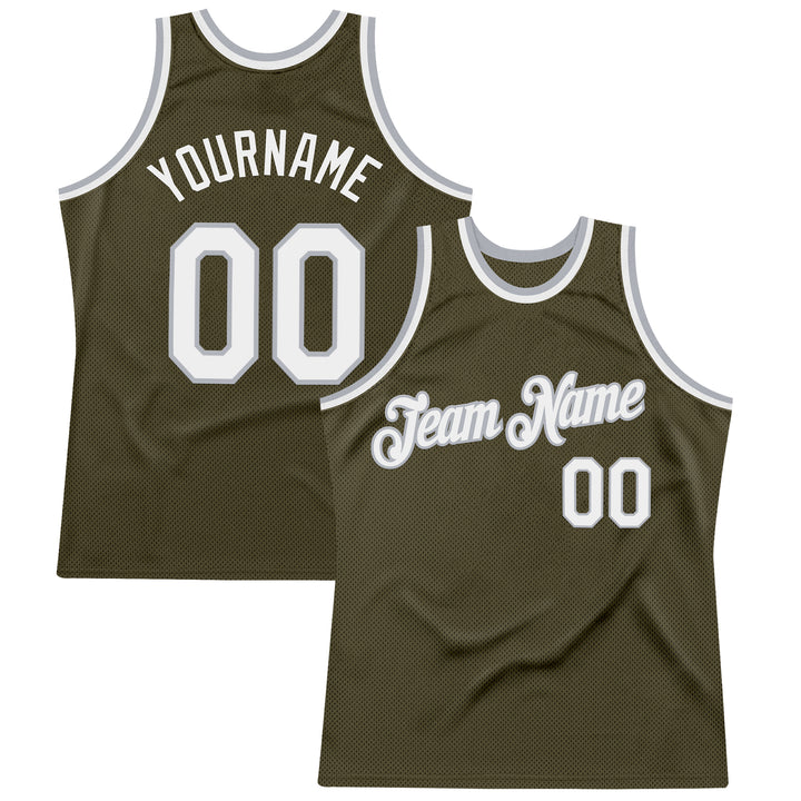 Custom Olive White-Gray Authentic Throwback Salute To Service Basketball Jersey