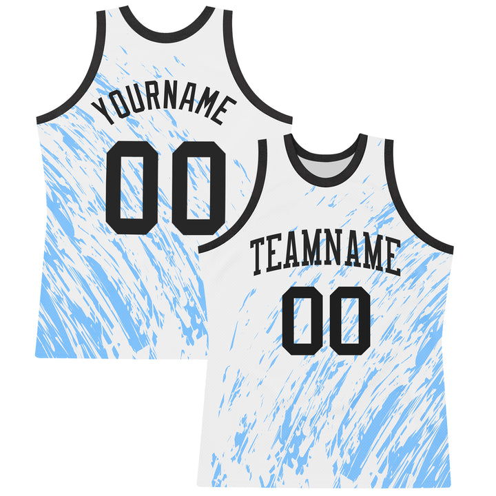 Custom White Black-Light Blue Splash Round Neck Sublimation Basketball Suit Jersey