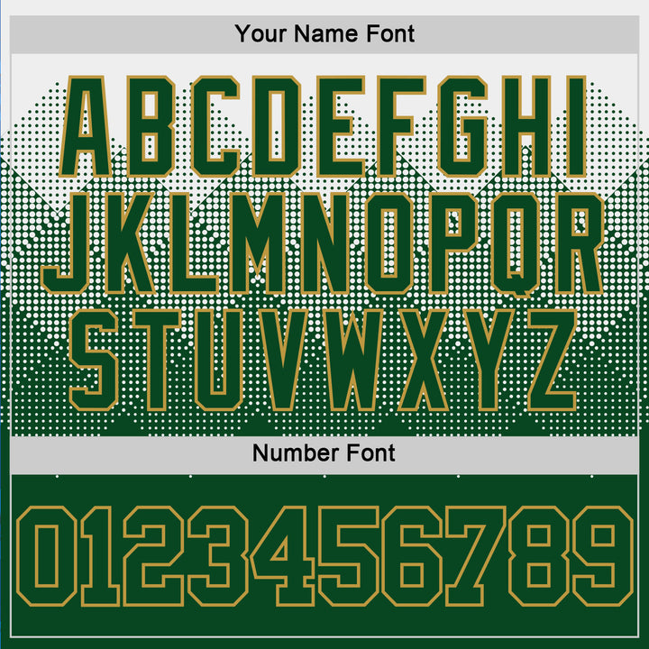 Custom White Green-Old Gold Gradient Square Shapes Round Neck Sublimation Basketball Suit Jersey