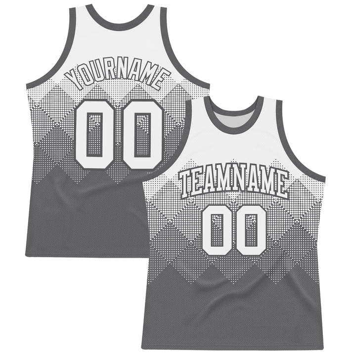 Custom White Steel Gray Gradient Square Shapes Round Neck Sublimation Basketball Suit Jersey