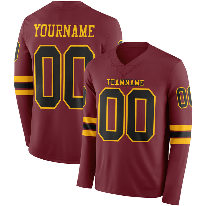 Custom Burgundy Black-Gold Long Sleeve Authentic Football Jersey